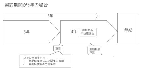 なので、1回目の3年契約を満了し、2回目の3年のあいだは無期転換申込みが可能となります。