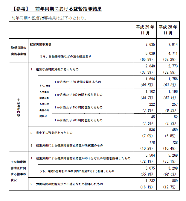 平成29年度の「過重労働解消キャンペーン」の結果が公表されました