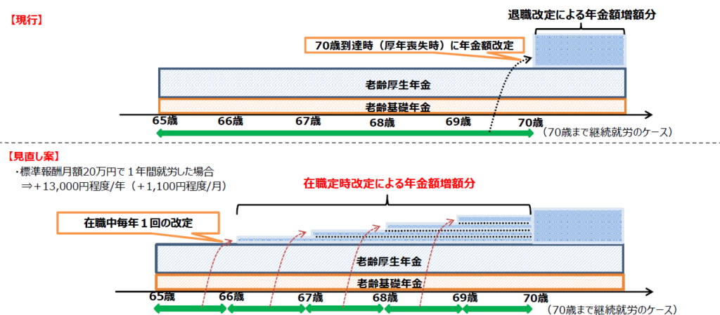 令和2年通常国会では年金に関する法改正がいくつか行われましたが、今回はその中から「在職時定時改定」について解説します。 在職時定時改定とこれまでの年金額の改定 在職時定時改定とは、65歳以上の働きながら(社会保険に加入しながら)年金を... -