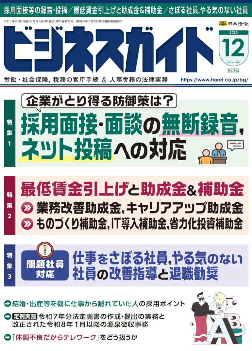 タイトルのとおりですが、弊所の代表、川嶋英明が、ビジネスガイド12月号(2025)に記事を寄稿させていただきました。