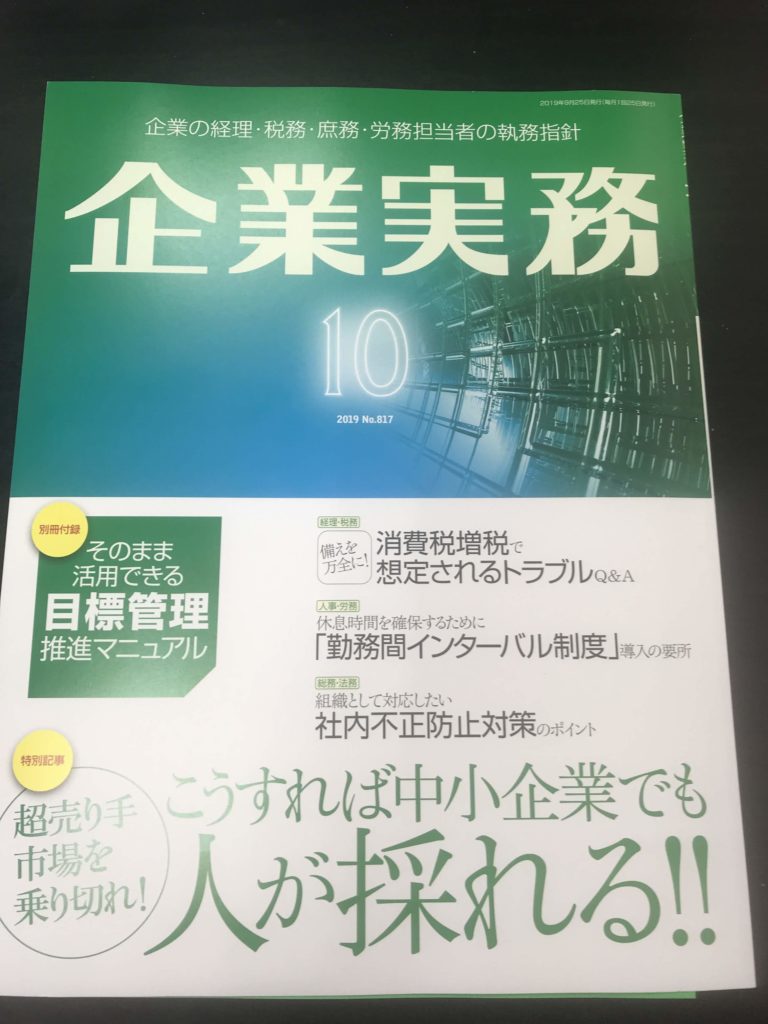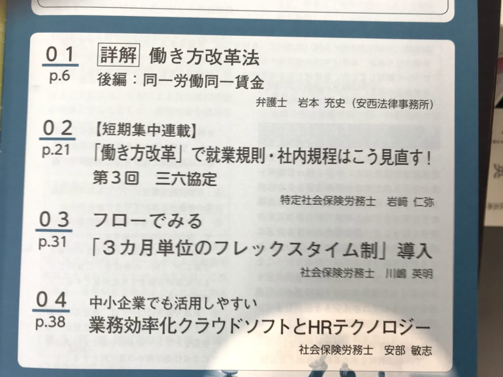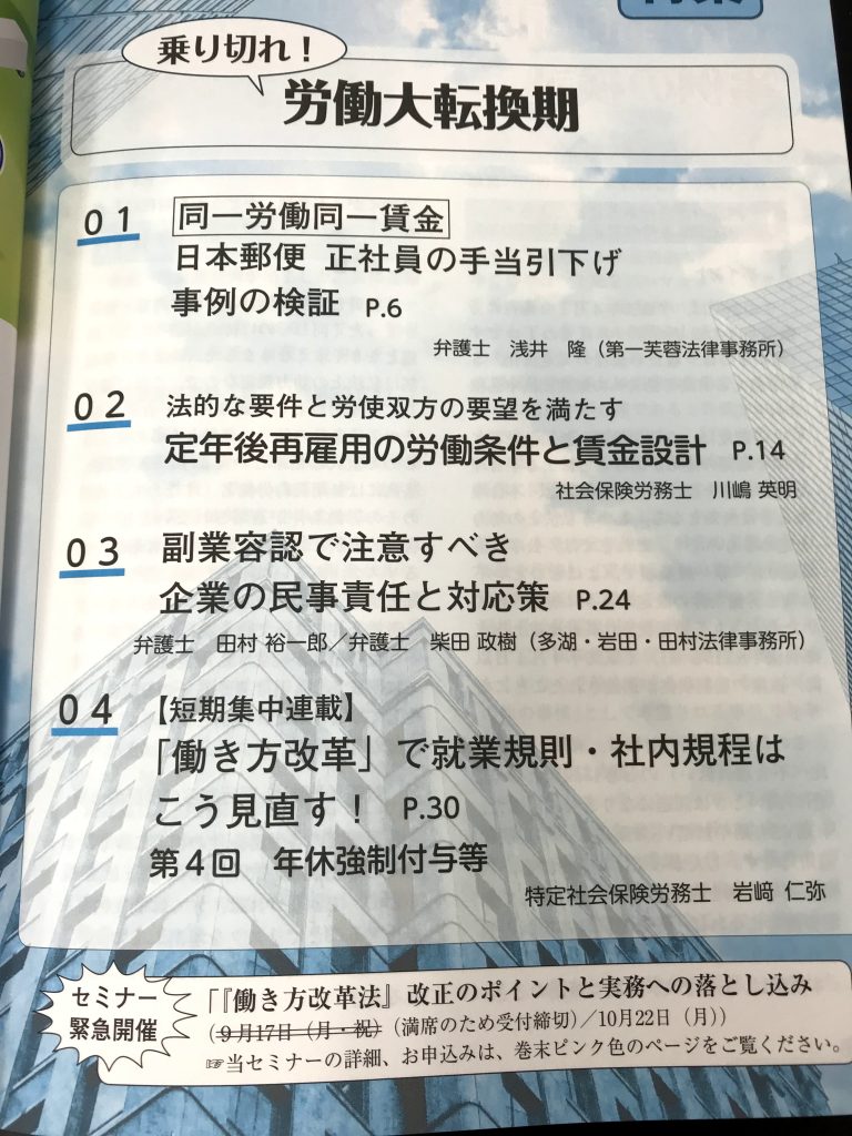 タイトルのとおりですが、本日発売(2019年9月25日)の企業実務2019年10月号に、本ブログ管理人の川嶋の記事を寄稿させていただきました。 寄稿した記事のタイトル「休... -