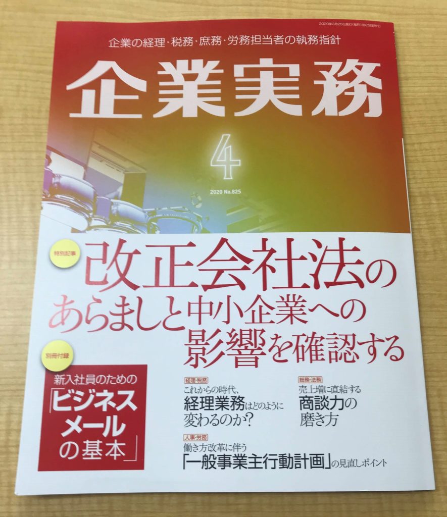 タイトルのとおりですが、本日発売(2020年3月25日)の企業実務2020年4月号に、本ブログ管理人の川嶋の記事を寄稿させていただきました。 寄稿した記事のタイトルは「雇... -