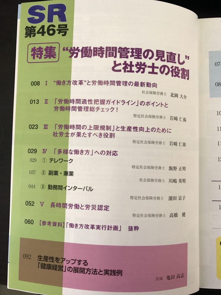 開業社労士向け雑誌「SR」46号に「副業・兼業」について寄稿させていただきました
