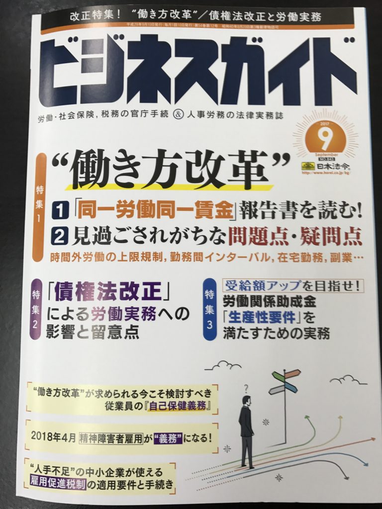 働き方改革に関する記事を明日発売のビジネスガイド9月号に寄稿しました
